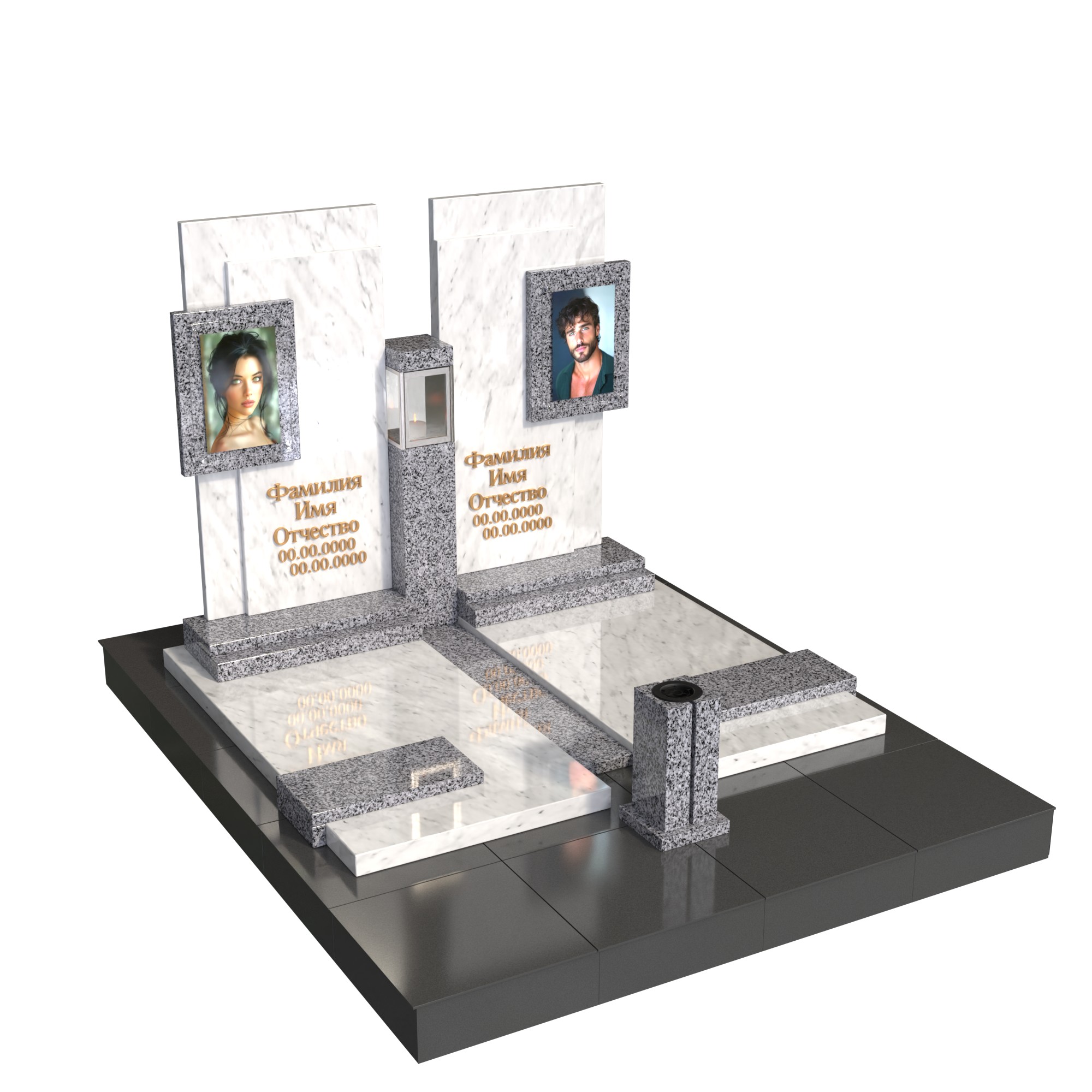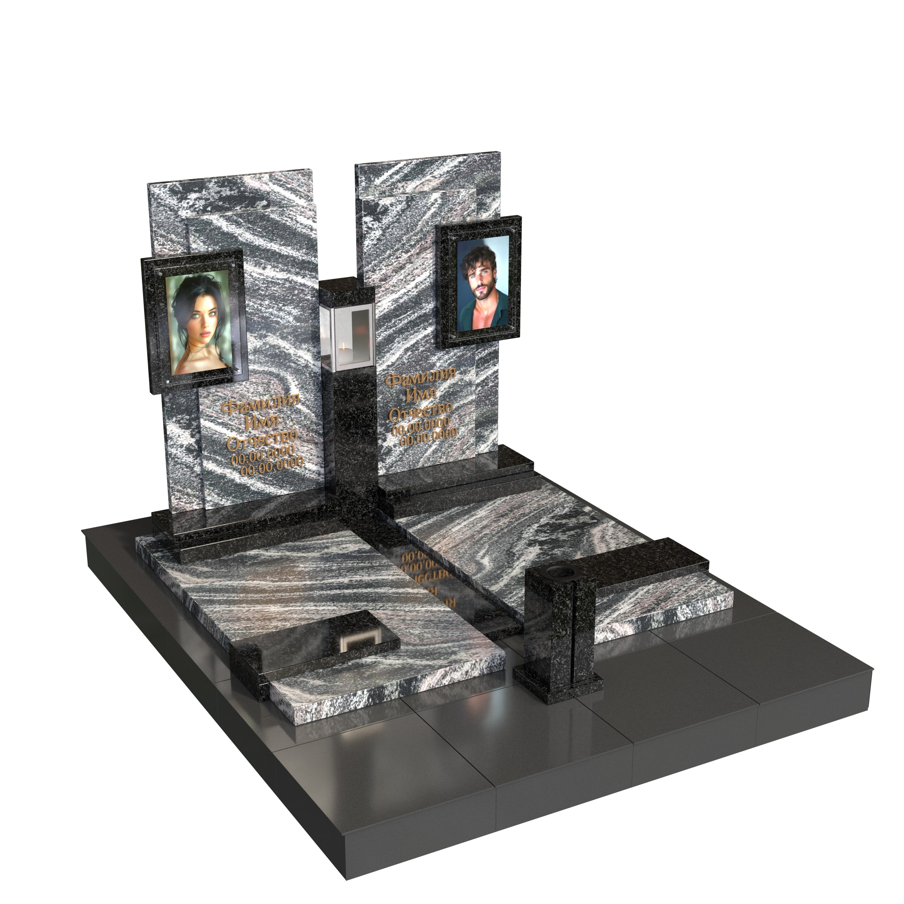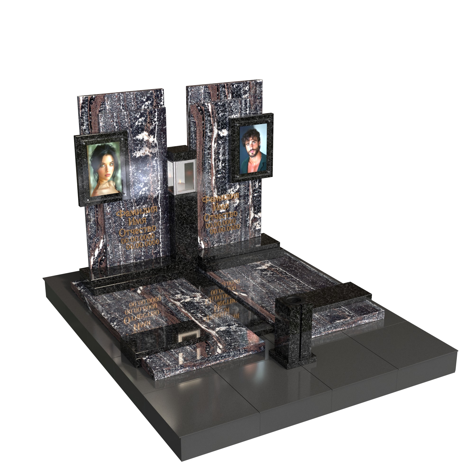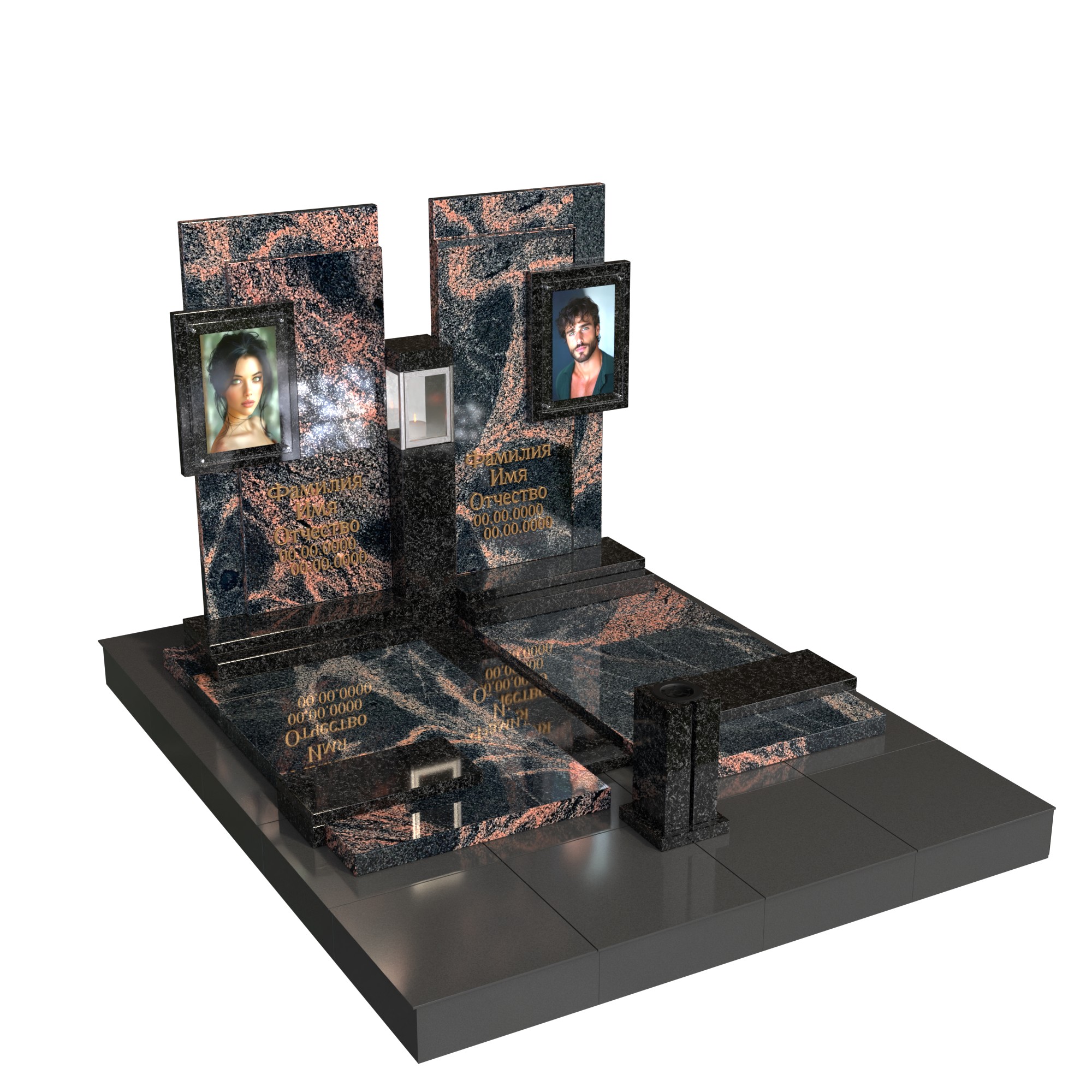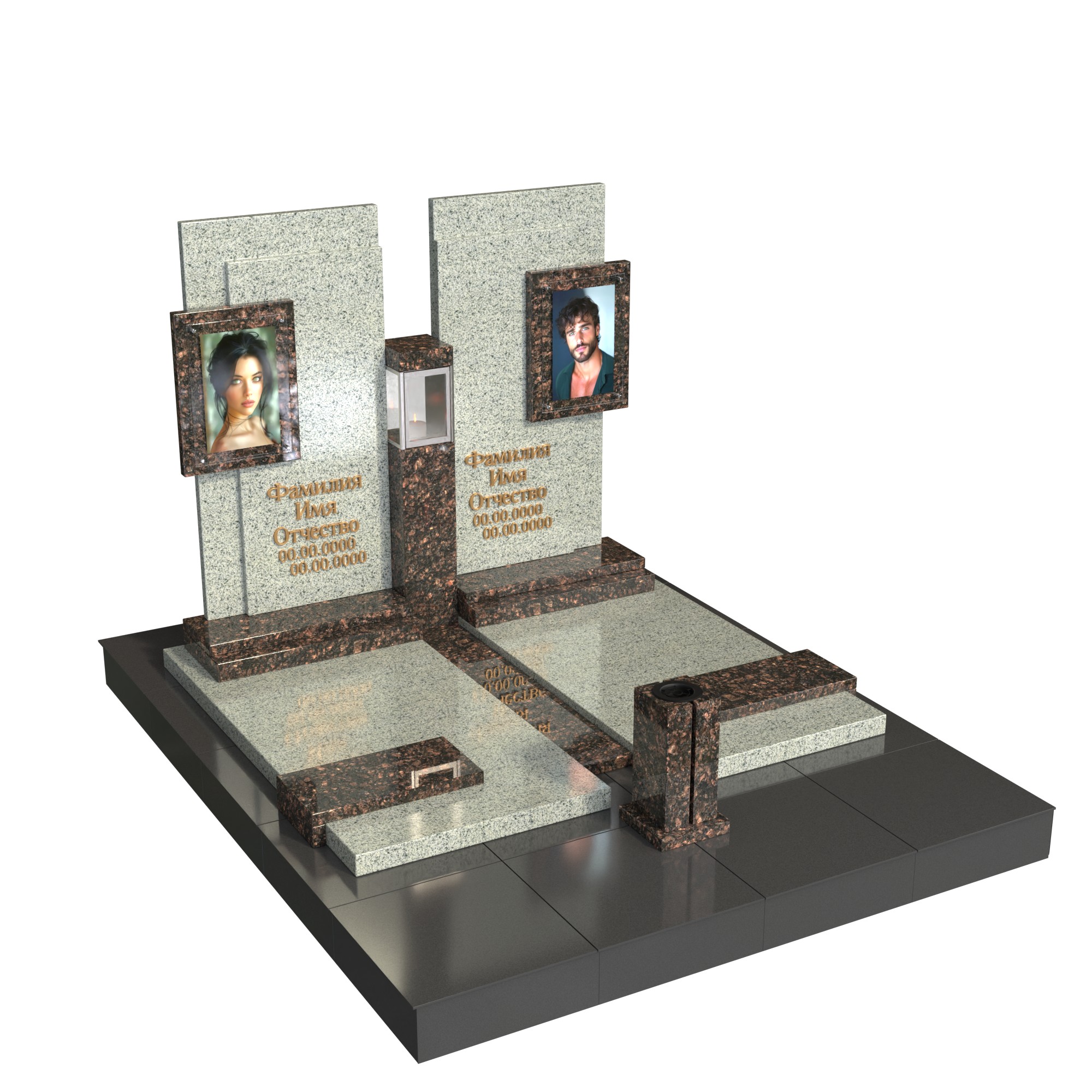 парный/семейный памятник из долговечного натурального камня;